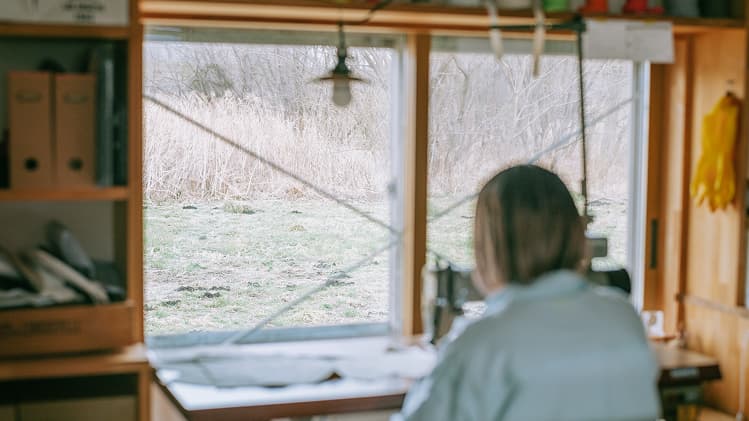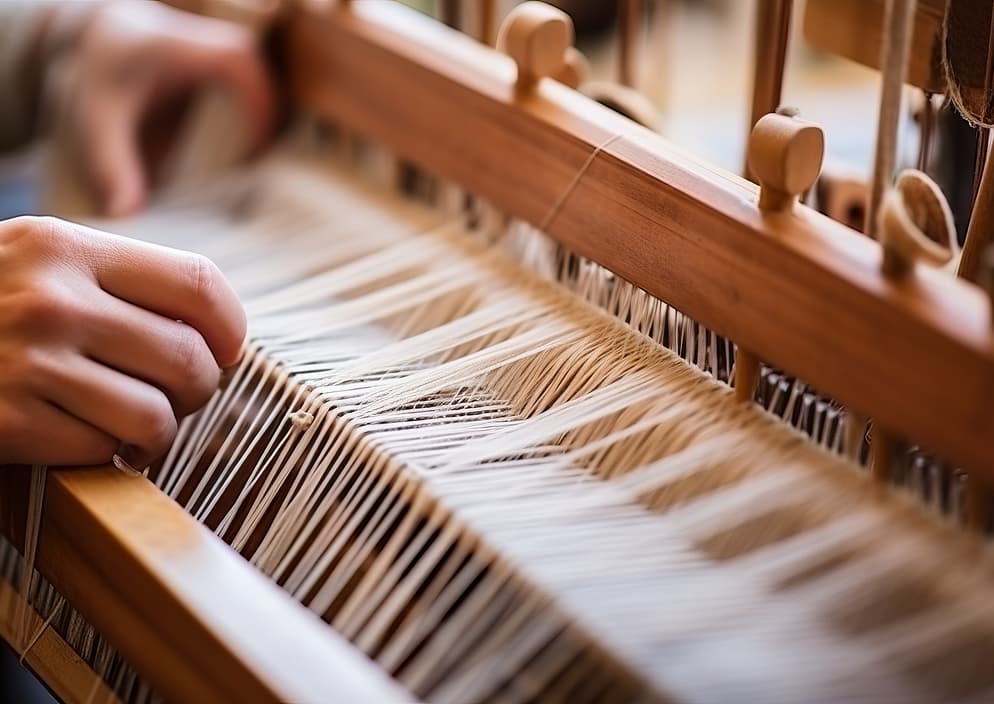 旧式織機に一本ずつ縦糸をかける「糸を立てる」という手作業から、CXMの生地づくりは始まります。