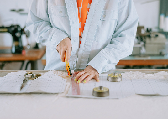 織り手への敬意が、生地を余らせない無駄のないモノづくりを支えています。
