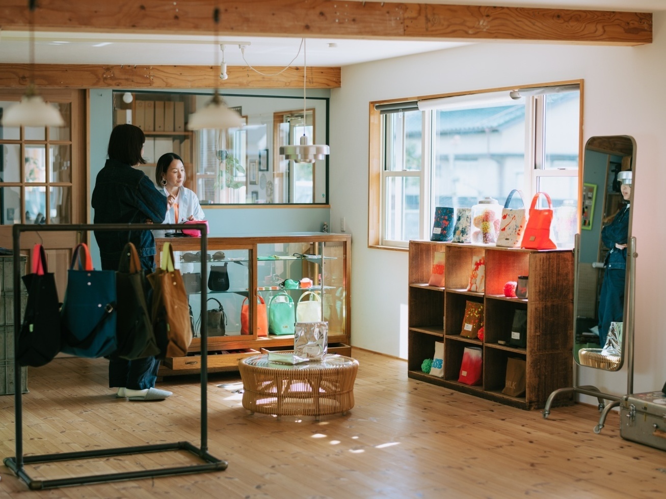 アトリエに隣接するショップでは、実際の商品を見ながらのオーダーや在庫商品をご購入いただけます。