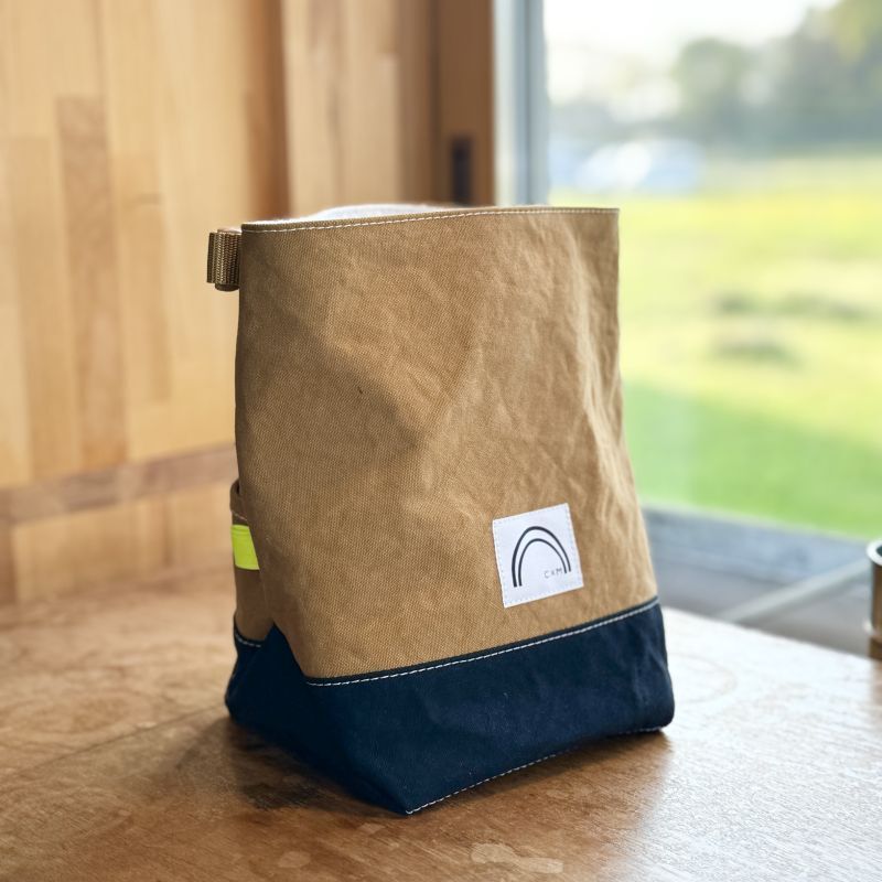 CXMのバッグには胴と底が繋がった三角のマチを多用しています。