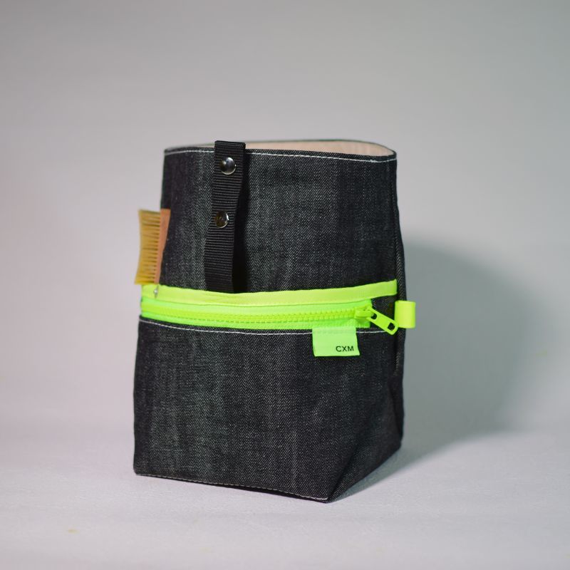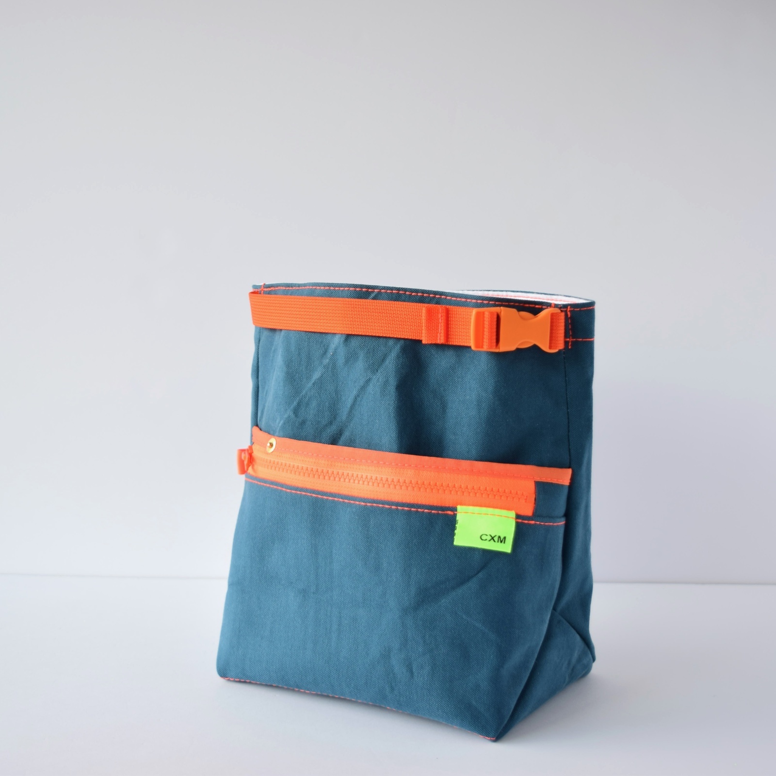 CXMのバッグには胴と底が繋がった三角のマチを多用しています。