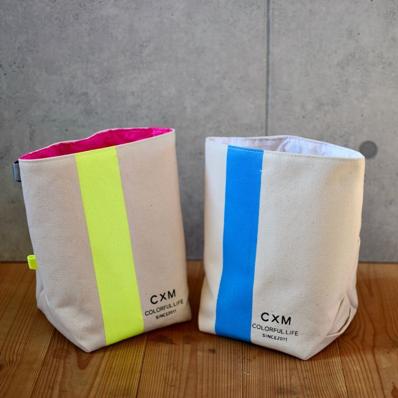 CXMのバッグには胴と底が繋がった三角のマチを多用しています。