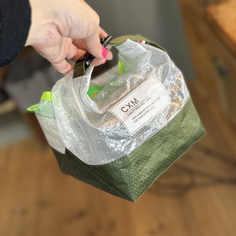 CXMのバッグには胴と底が繋がった三角のマチを多用しています。