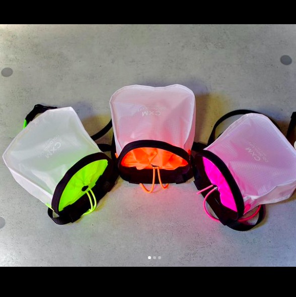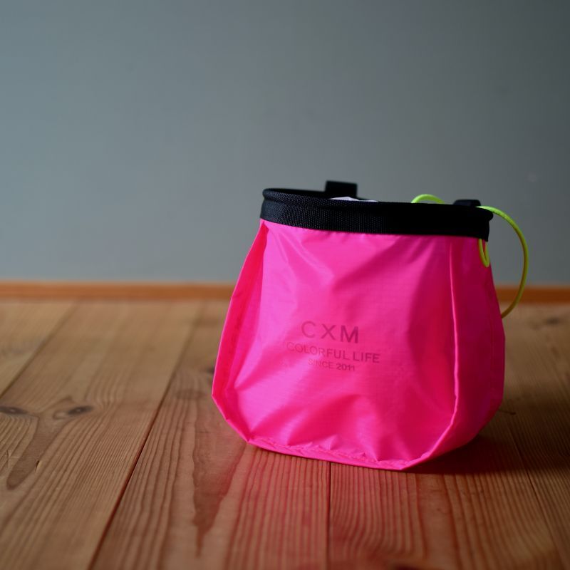 そこからインスパイアを得て、作製を始めるうちに、縫代が外側に出ていることで、内側の空間が広くなり、チョークアップがスムーズに出来ること、また羽のような縫代がバッグの座りを良くすることで置いても安定感があり、置き型チョークバッグ としても使いやすいということに気付きました。