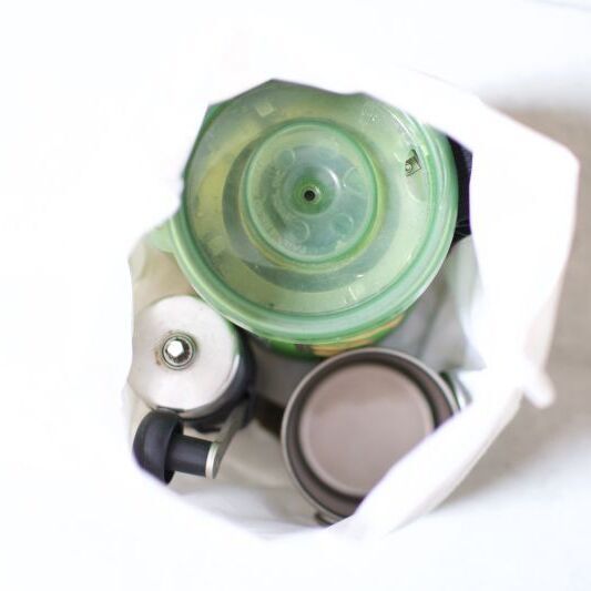 撥水加工されたリップストップナイロンは底までつながっているので、多少の濡れた物を入れても大丈夫。
