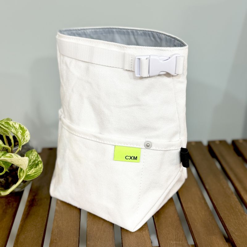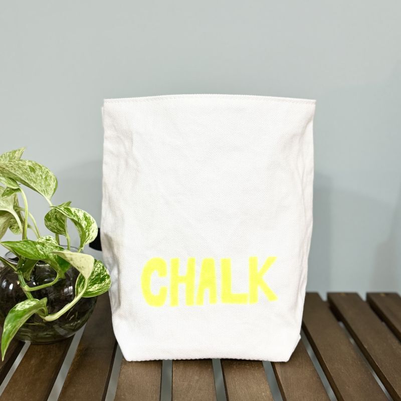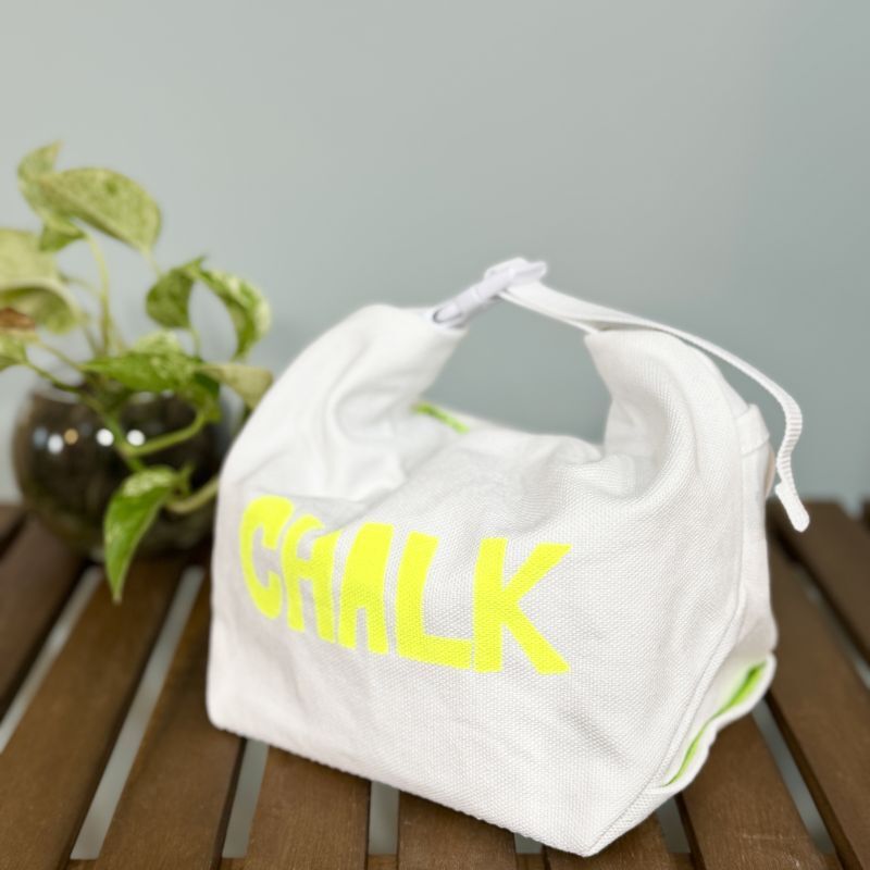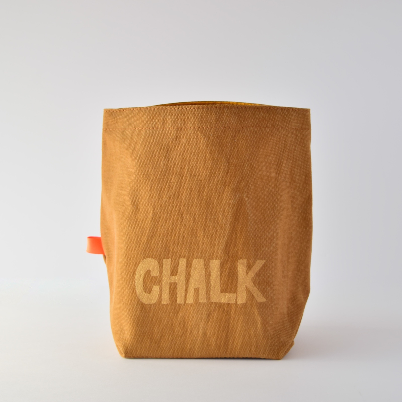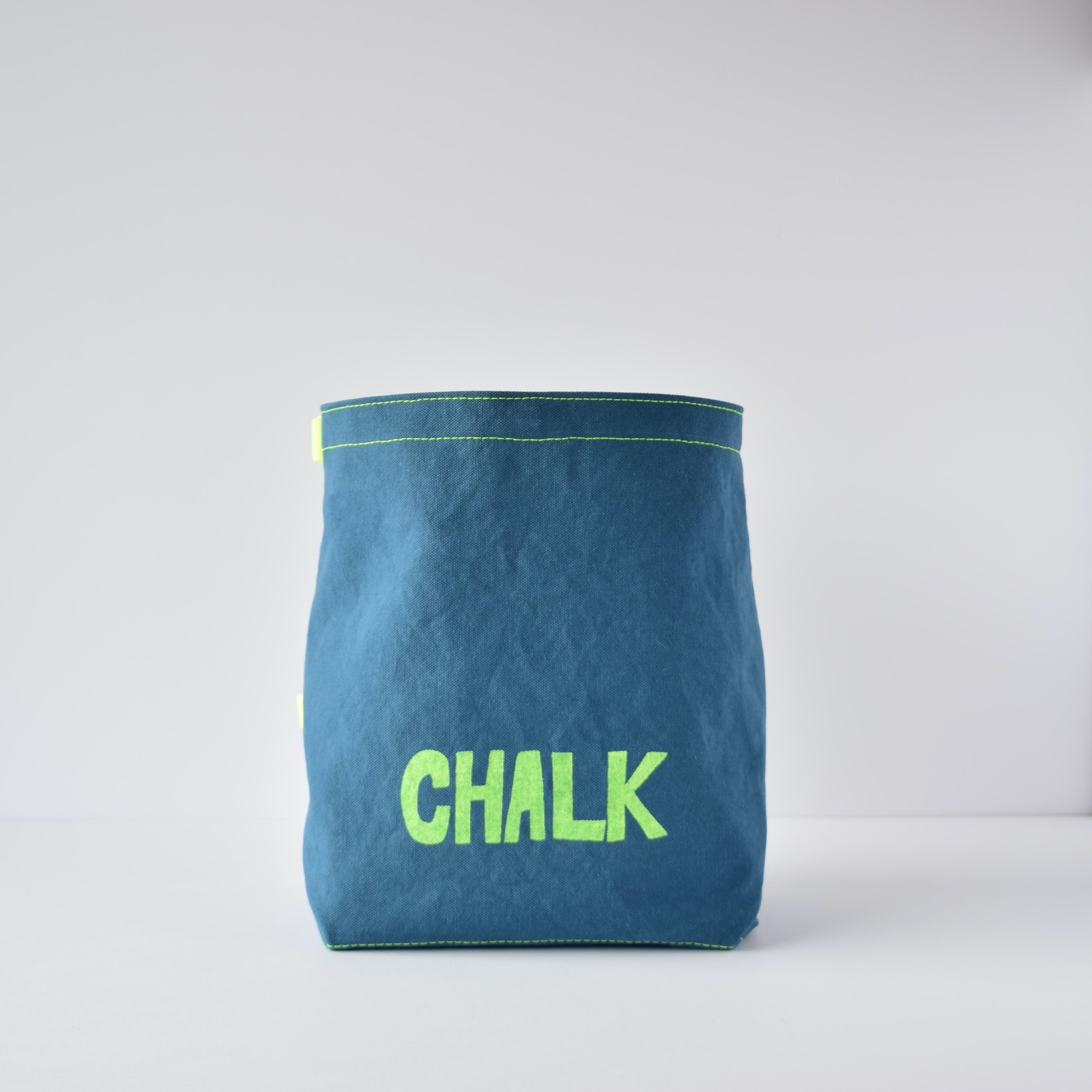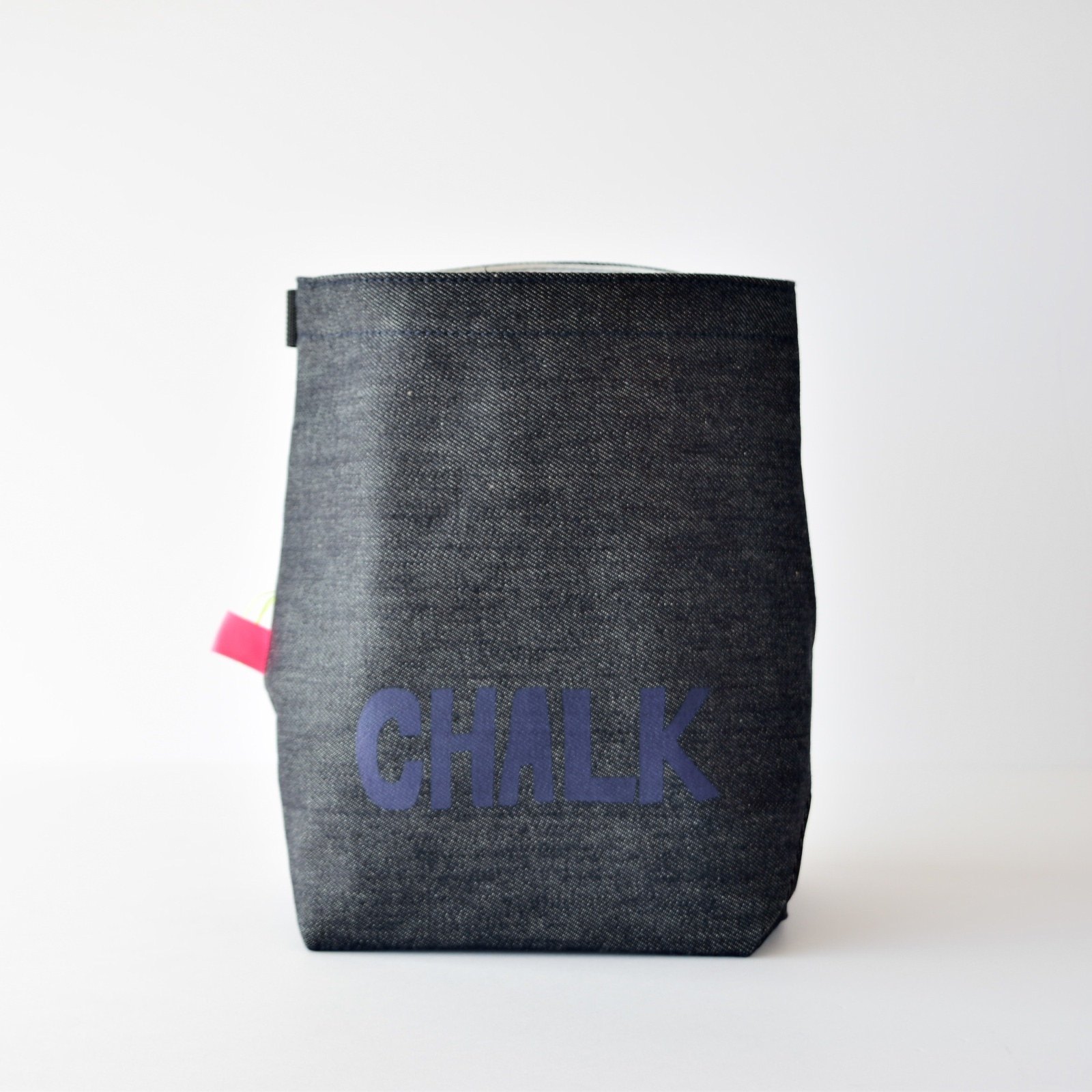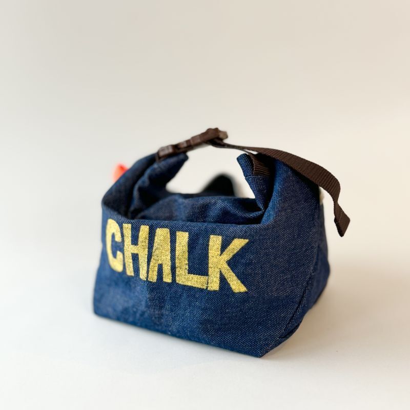 底の生地を二重にし、底に重心をおくことでチョークバッグが倒れることを防ぎます。物を入れることでより安定します。