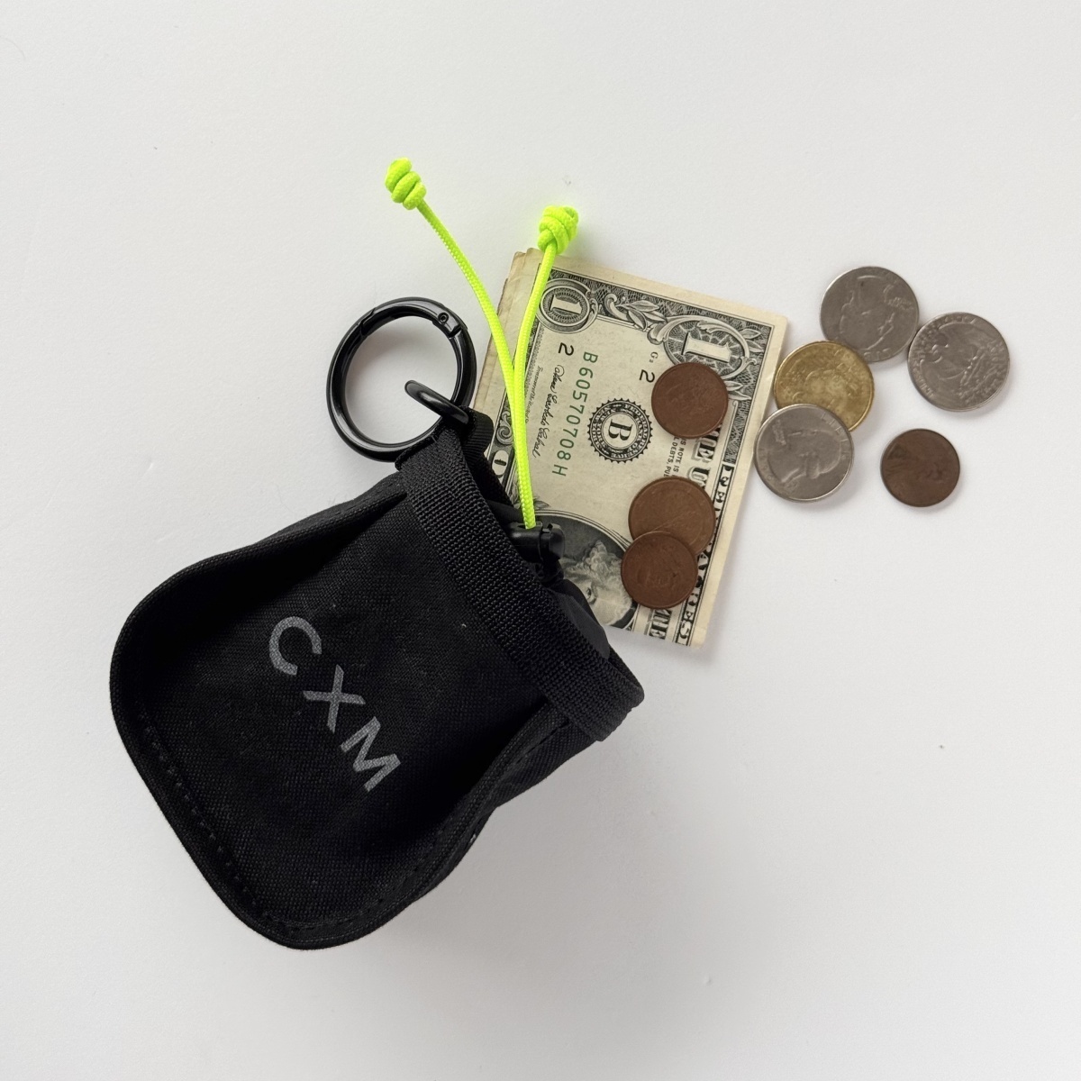 CXMで人気のチョークバッグ特徴的なフォルムを持つBELL BAGをベースに小さなポーチに仕上げました。
