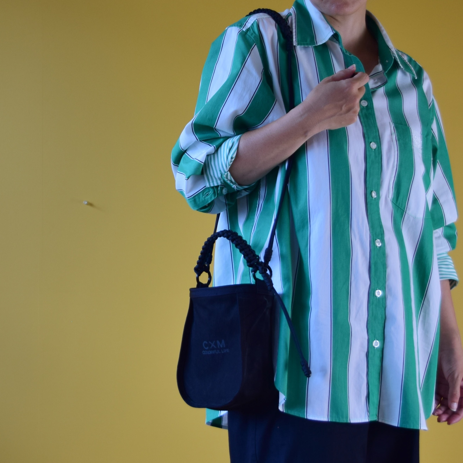 CXMで人気のチョークバッグ特徴的なフォルムを持つBELL BAGをベースに編み込みパラコードのハンドルを付け、デイリーユースなバッグに仕上げました。